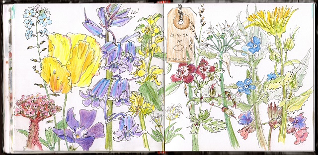 Ik heb geprobeerd zonder voortekening direct te schilderen, wat ik bijna nooit doe. Meestal zet ik wel een paar lijnen en laat ik het aquarel voor thuis, omdat het buiten zo licht is op mijn papier. Maar ik heb een weekje geoefend in mijn tuin en dacht dat ik de sprong maar moest wagen.